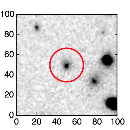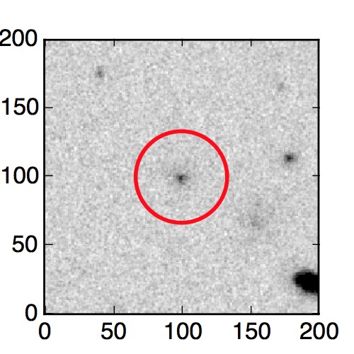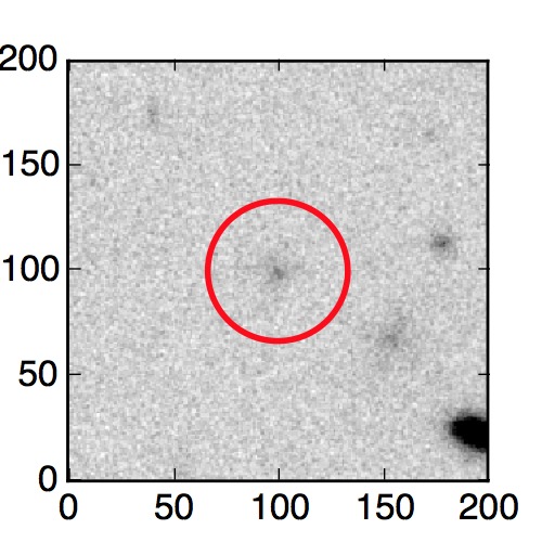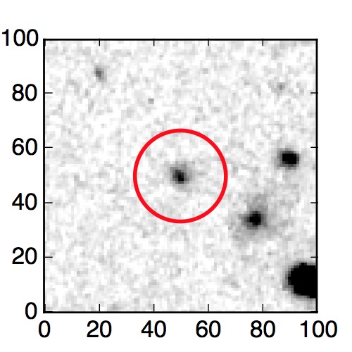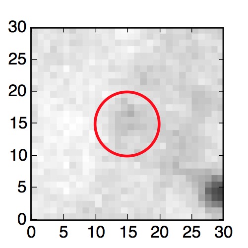 The red circle in the various panels is 1" in radius. The images are 6"x6".