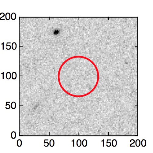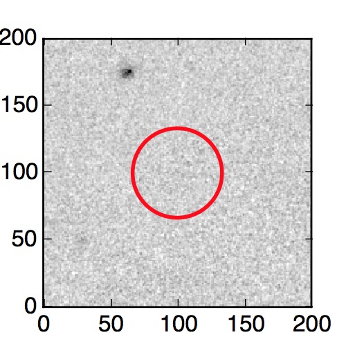 The red circle in the various panels is 1" in radius. The images are 6"x6".