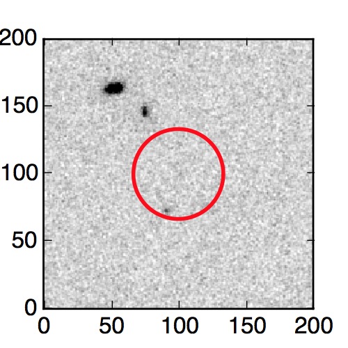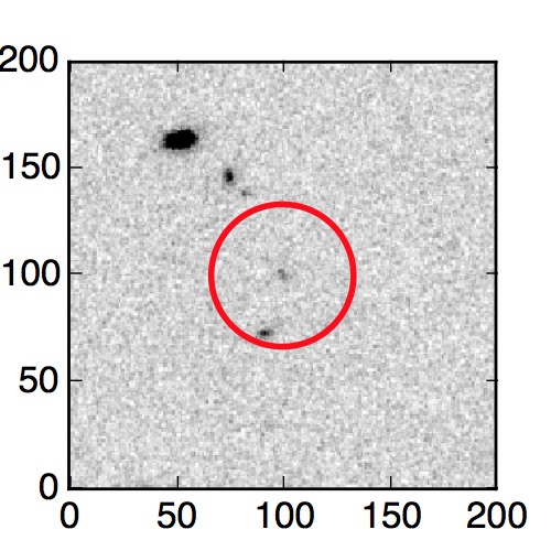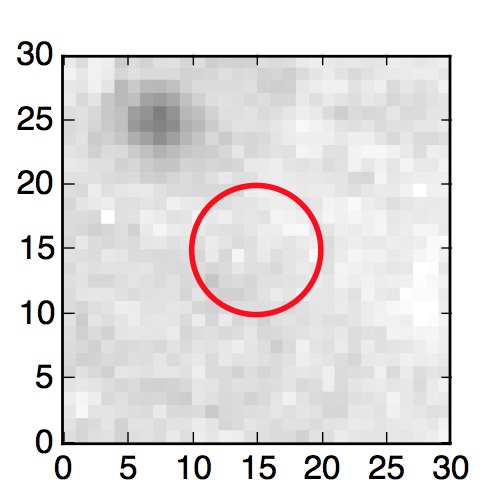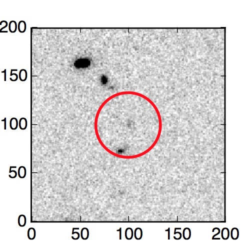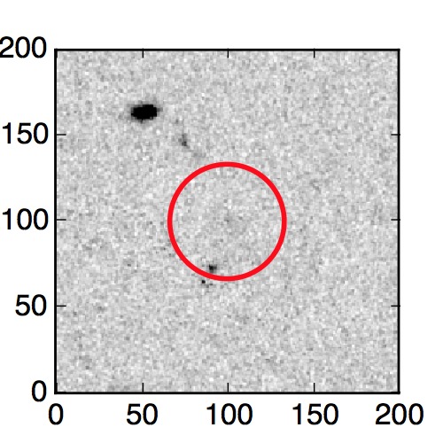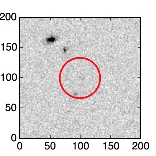 The red circle in the various panels is 1" in radius. The images are 6"x6".