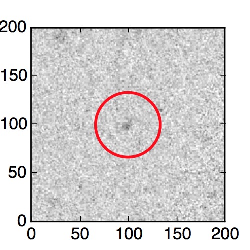 The red circle in the various panels is 1" in radius. The images are 6"x6".