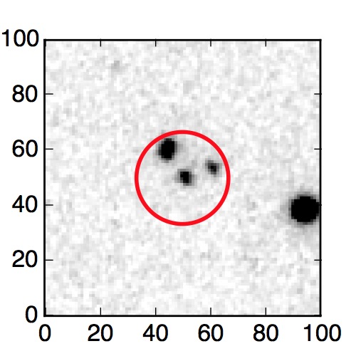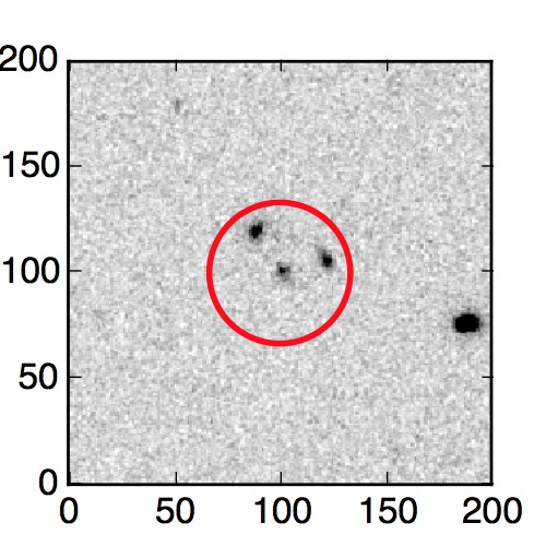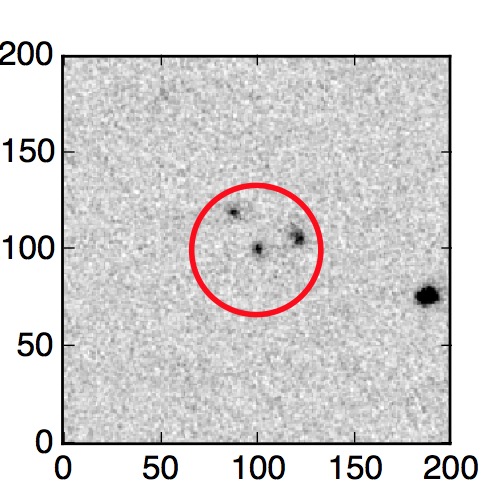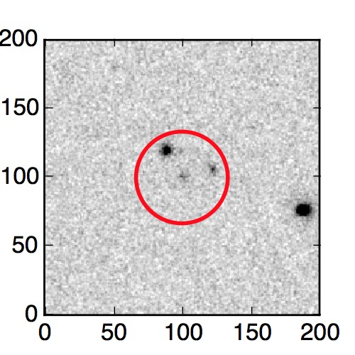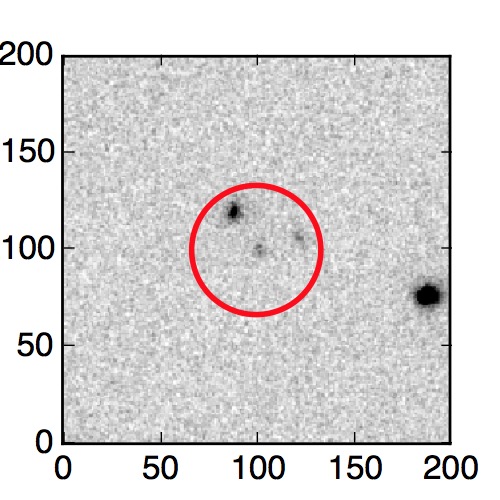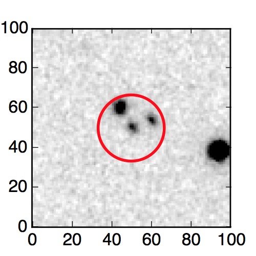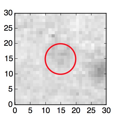 The red circle in the various panels is 1" in radius. The images are 6"x6".