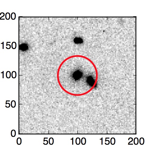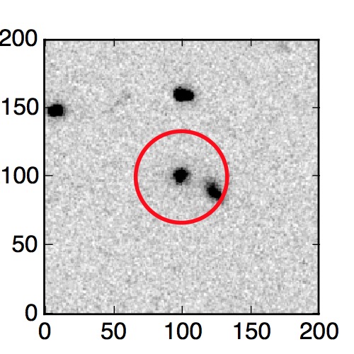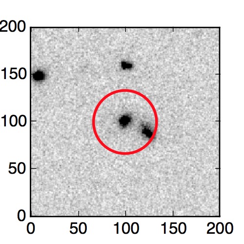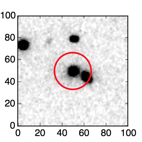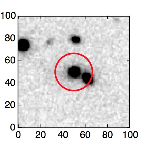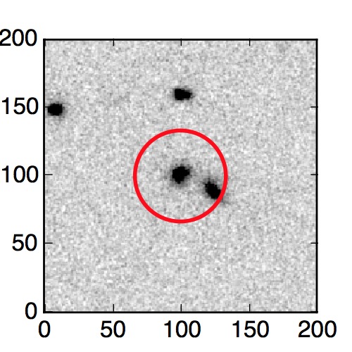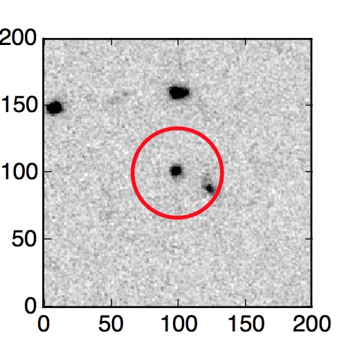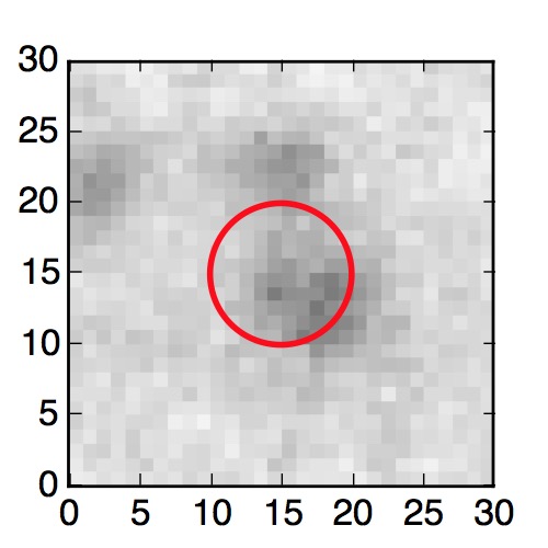 The red circle in the various panels is 1" in radius. The images are 6"x6".