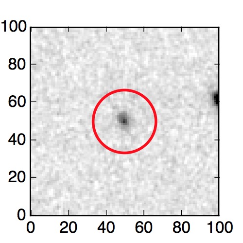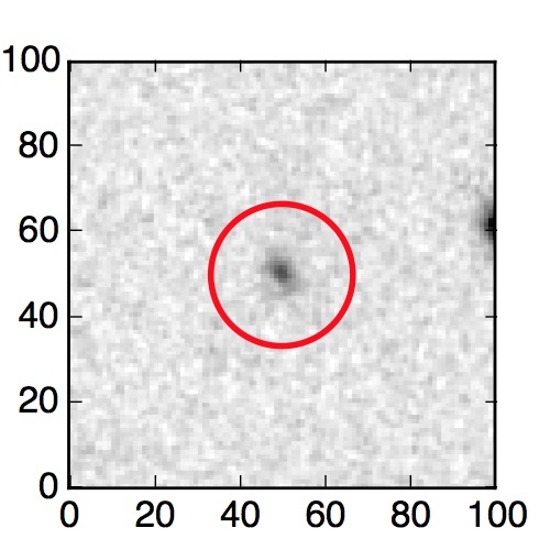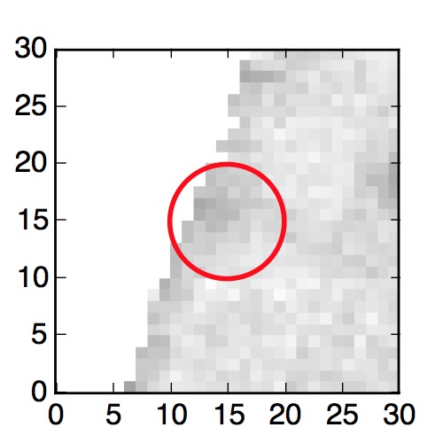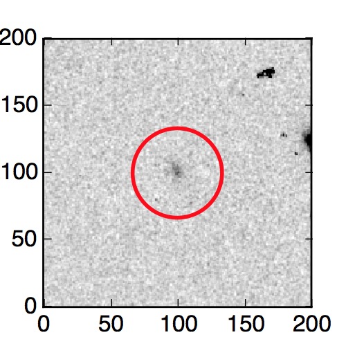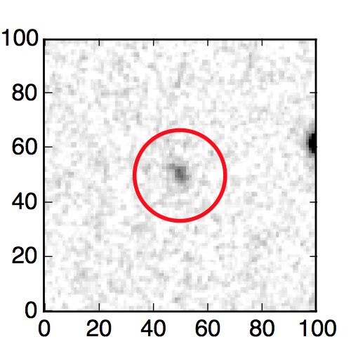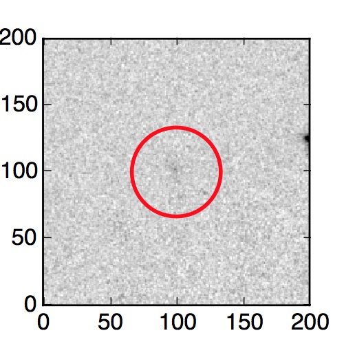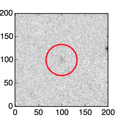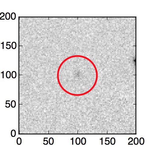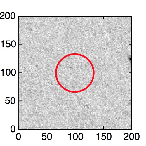 The red circle in the various panels is 1" in radius. The images are 6"x6".