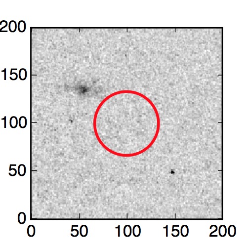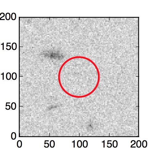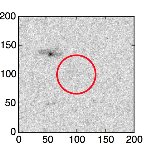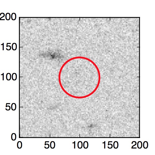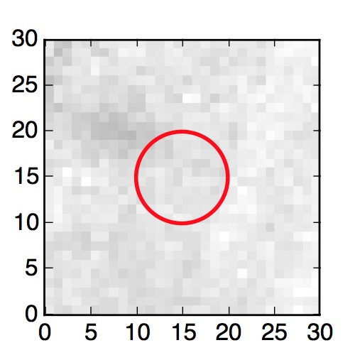 The red circle in the various panels is 1" in radius. The images are 6"x6".