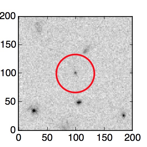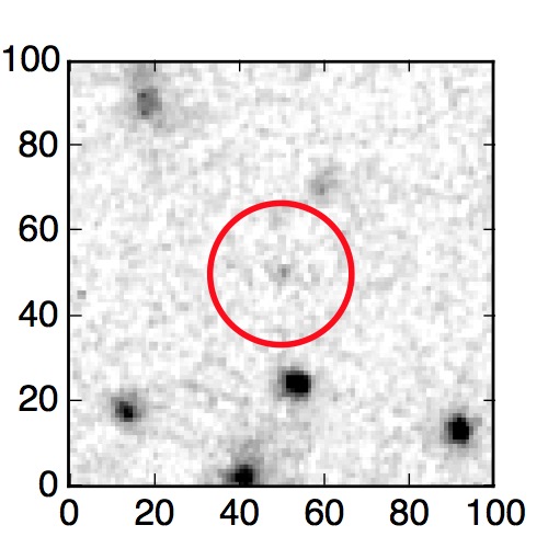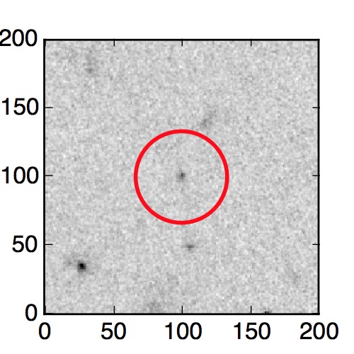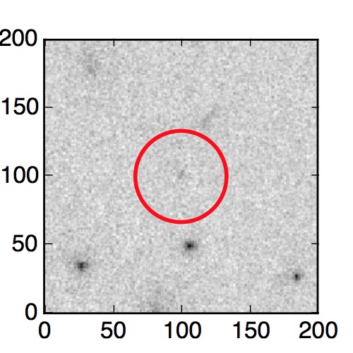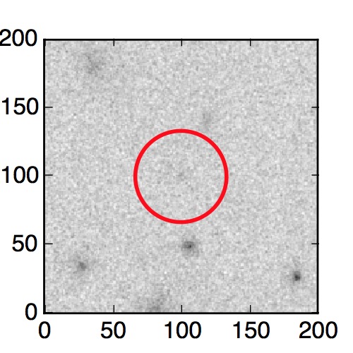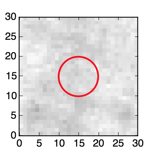 The red circle in the various panels is 1" in radius. The images are 6"x6".
