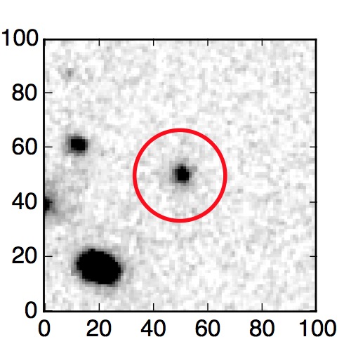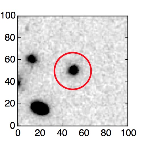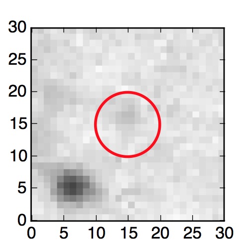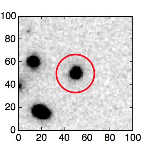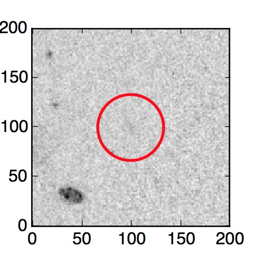 The red circle in the various panels is 1" in radius. The images are 6"x6".