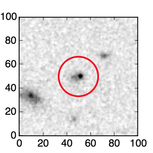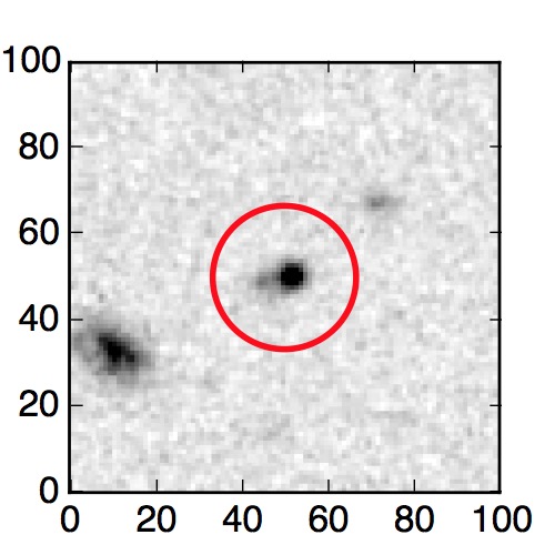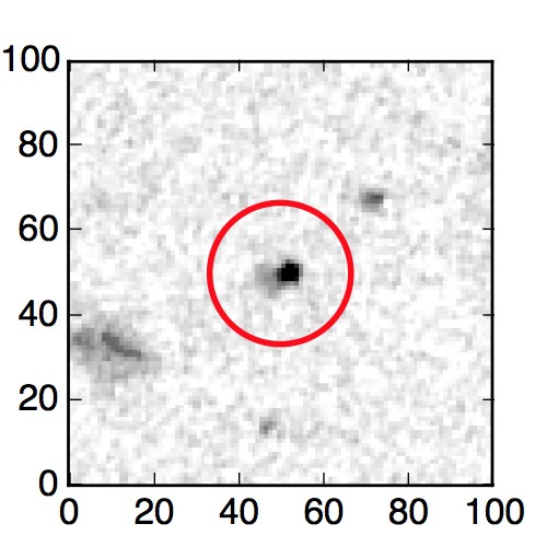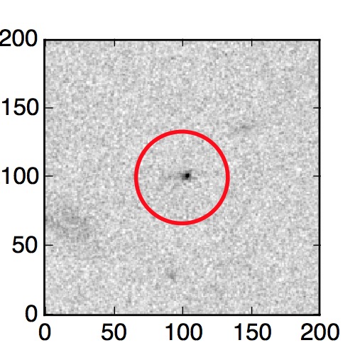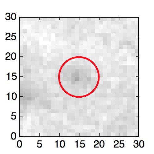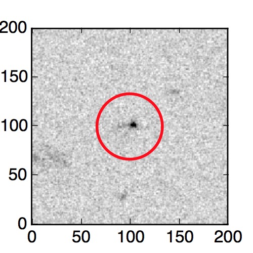 The red circle in the various panels is 1" in radius. The images are 6"x6".