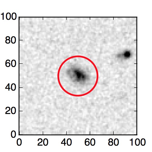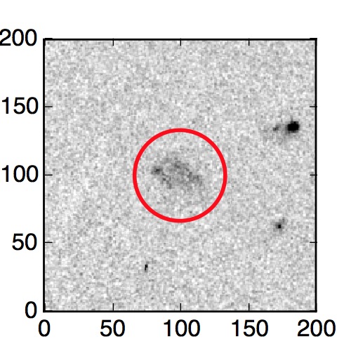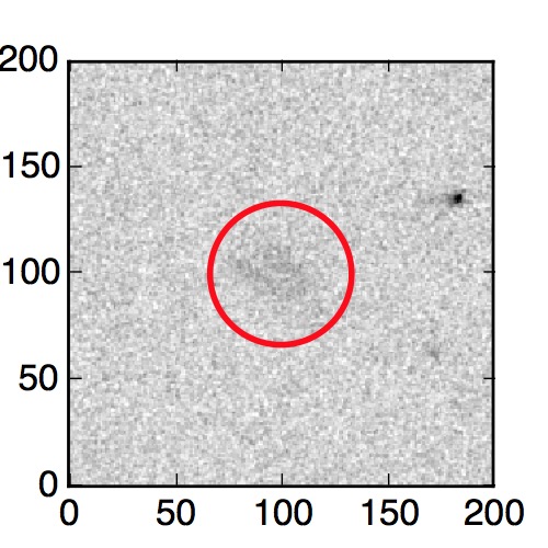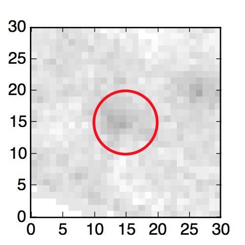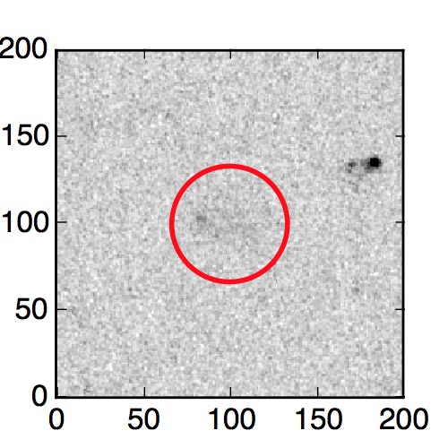 The red circle in the various panels is 1" in radius. The images are 6"x6".
