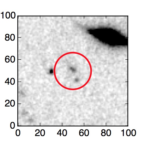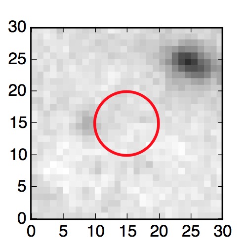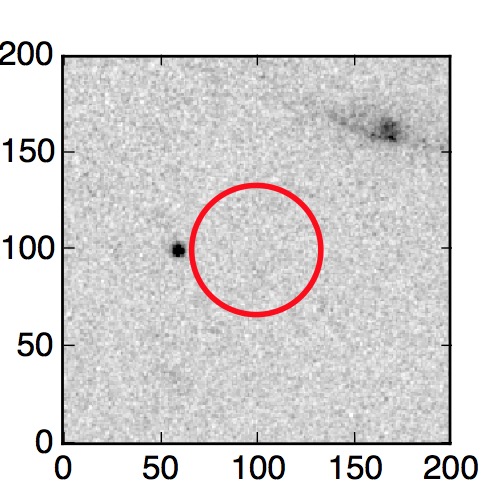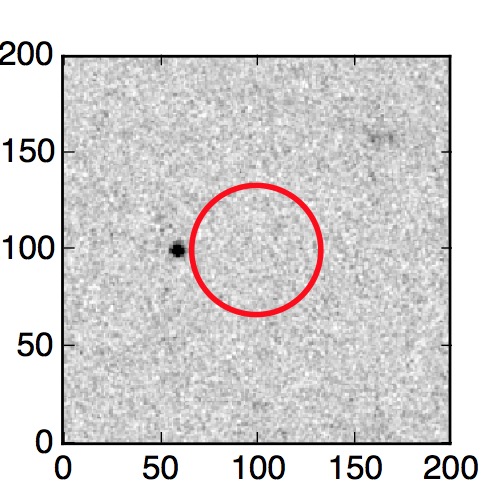 The red circle in the various panels is 1" in radius. The images are 6"x6".