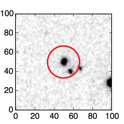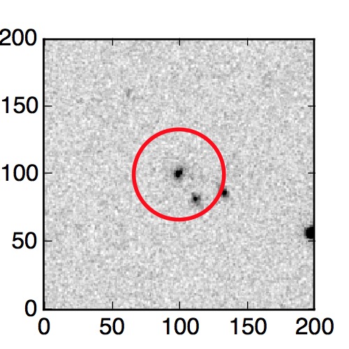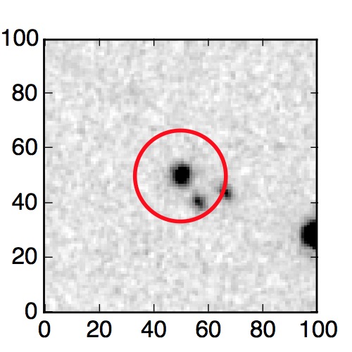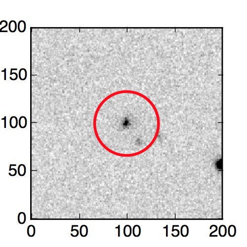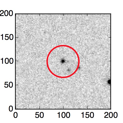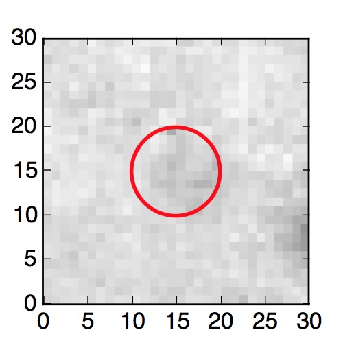 The red circle in the various panels is 1" in radius. The images are 6"x6".