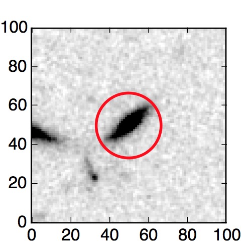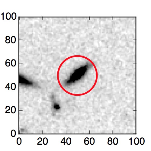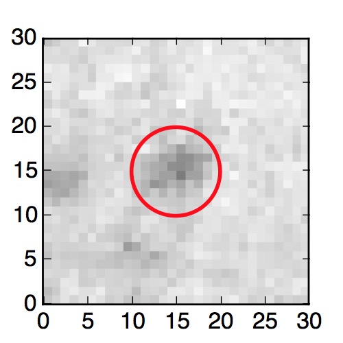 The red circle in the various panels is 1" in radius. The images are 6"x6".