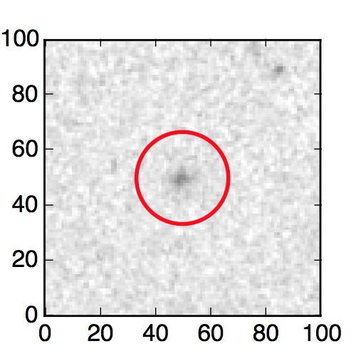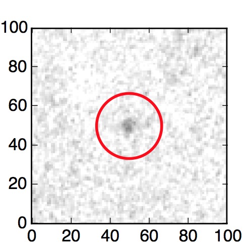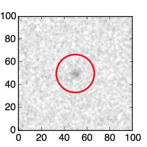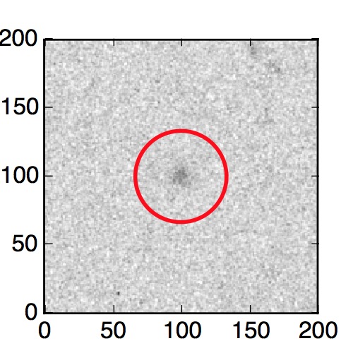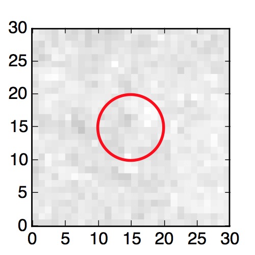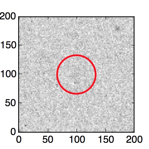 The red circle in the various panels is 1" in radius. The images are 6"x6".