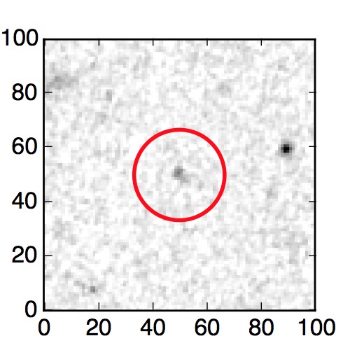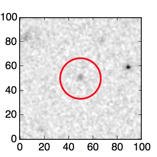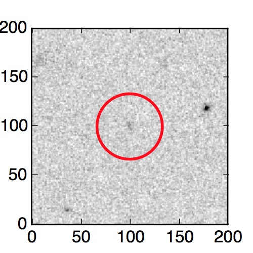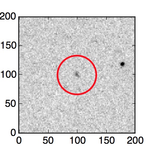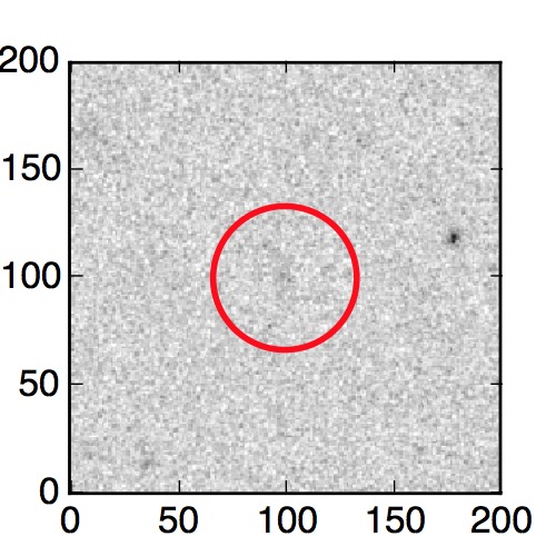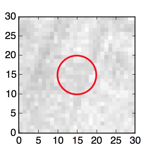 The red circle in the various panels is 1" in radius. The images are 6"x6".