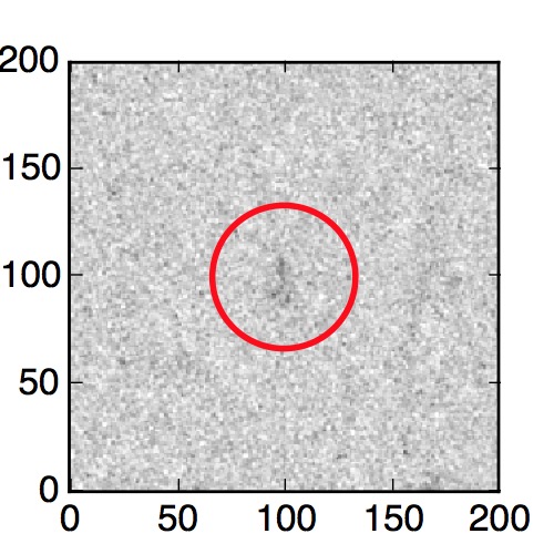 The red circle in the various panels is 1" in radius. The images are 6"x6".