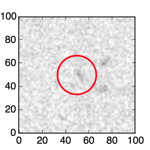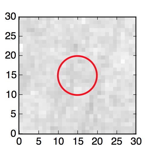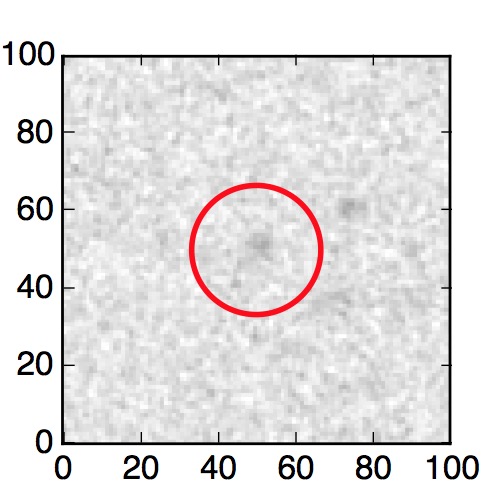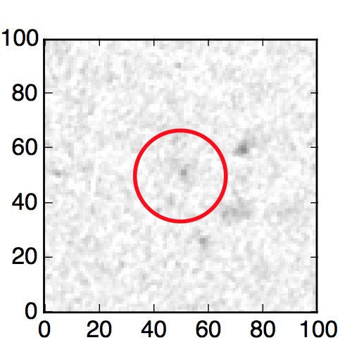 The red circle in the various panels is 1" in radius. The images are 6"x6".