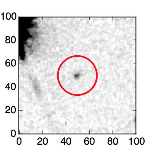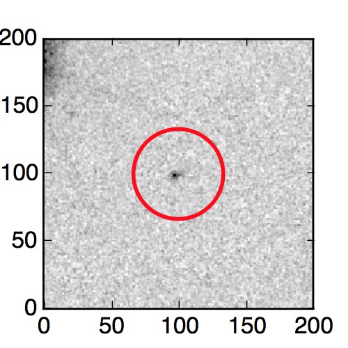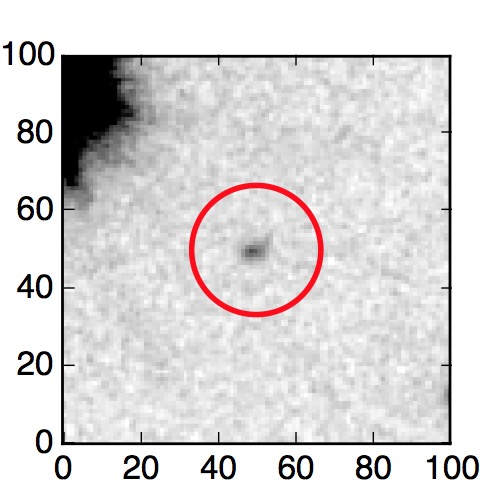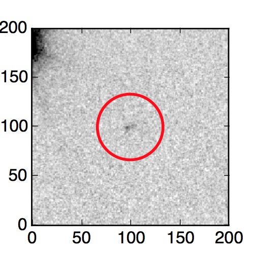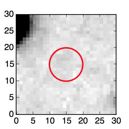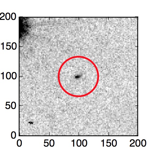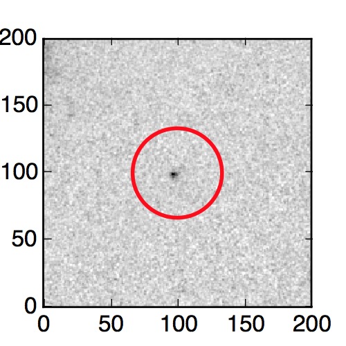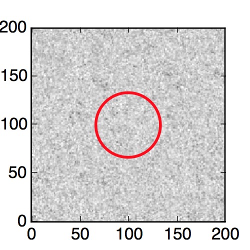 The red circle in the various panels is 1" in radius. The images are 6"x6".