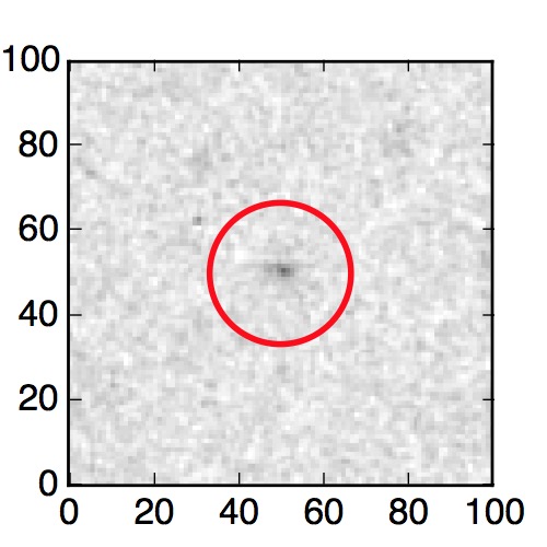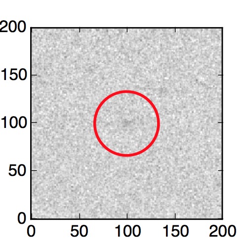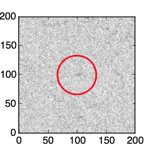 The red circle in the various panels is 1" in radius. The images are 6"x6".