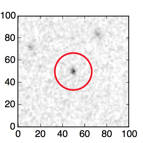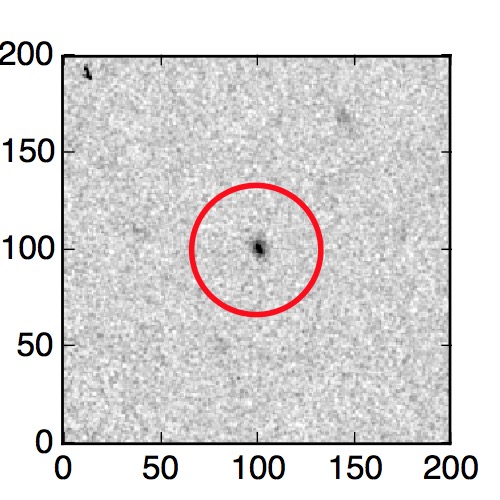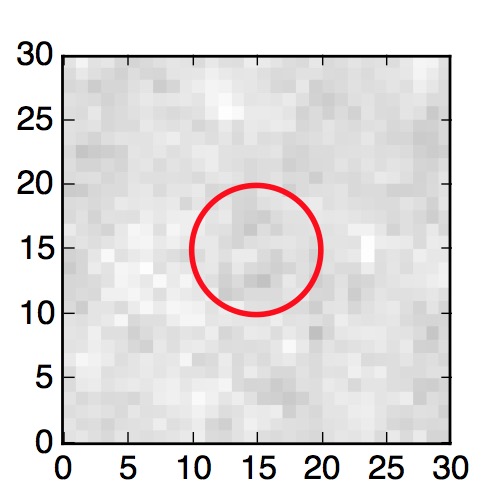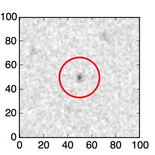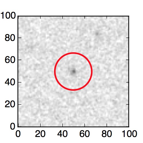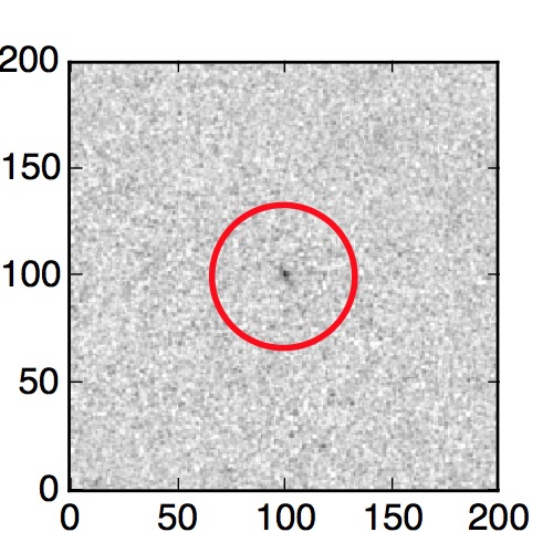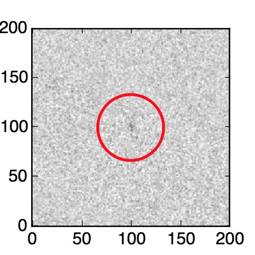 The red circle in the various panels is 1" in radius. The images are 6"x6".