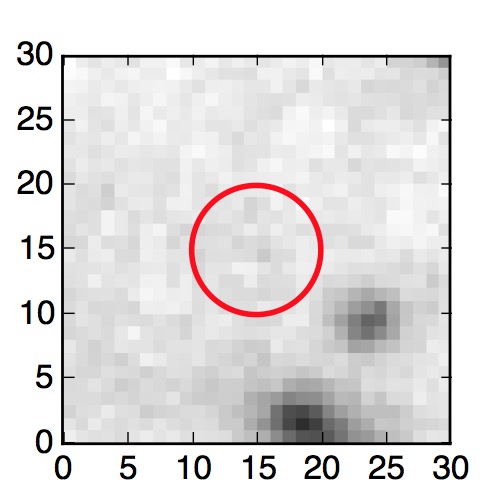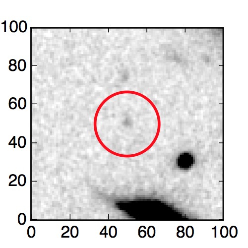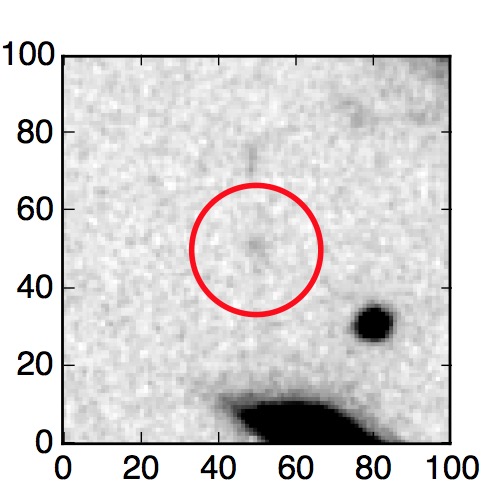 The red circle in the various panels is 1" in radius. The images are 6"x6".