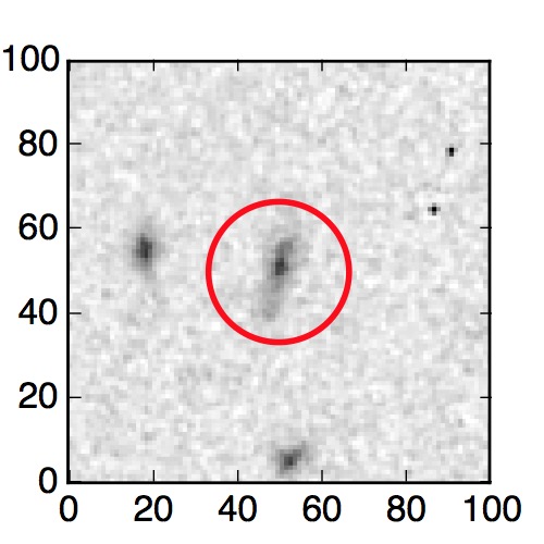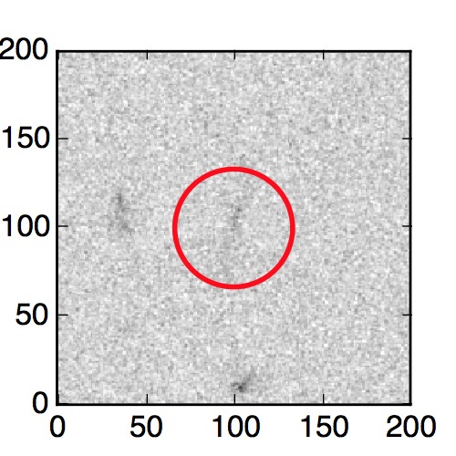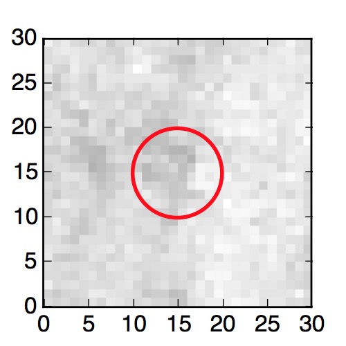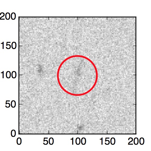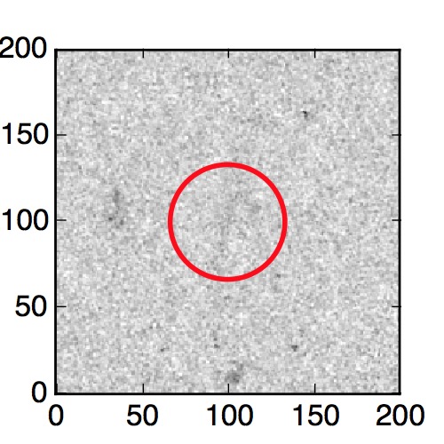 The red circle in the various panels is 1" in radius. The images are 6"x6".