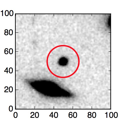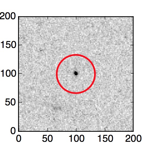 The red circle in the various panels is 1" in radius. The images are 6"x6".