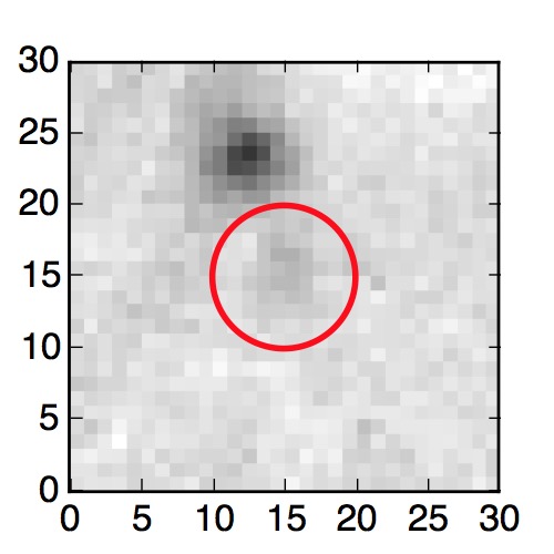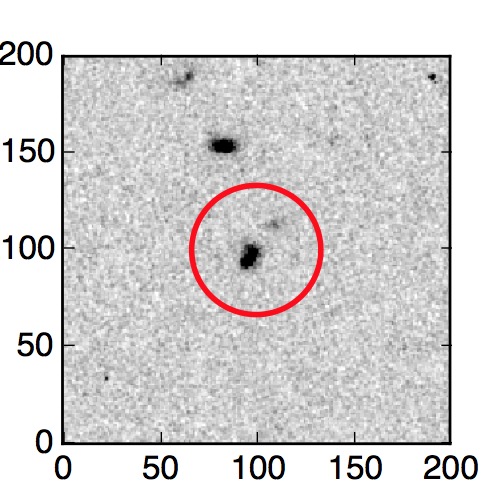The red circle in the various panels is 1" in radius. The images are 6"x6".