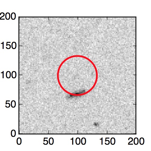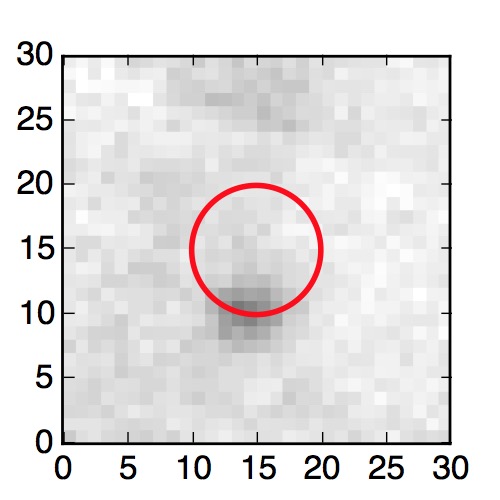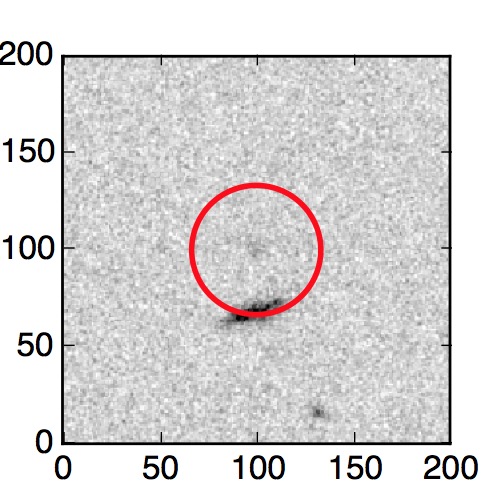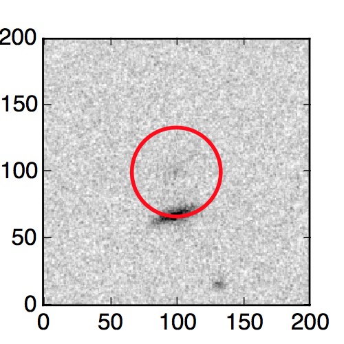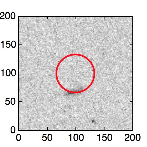 The red circle in the various panels is 1" in radius. The images are 6"x6".
