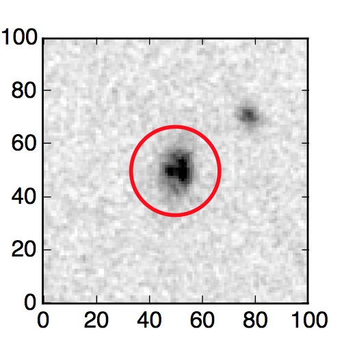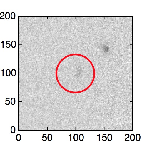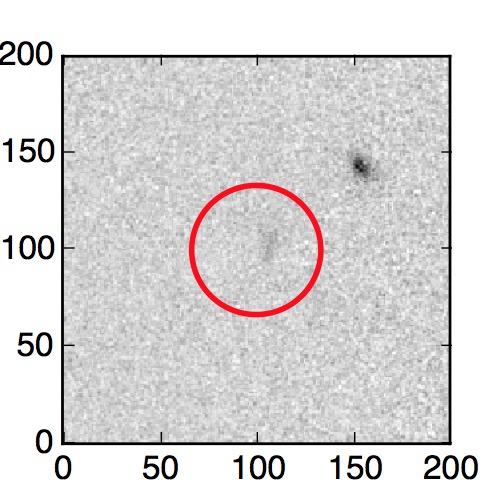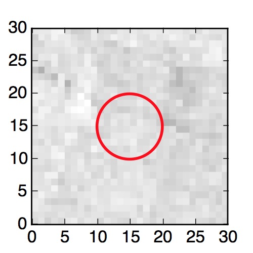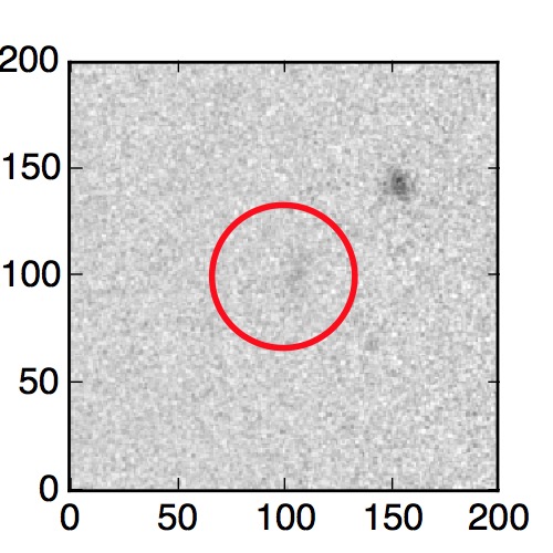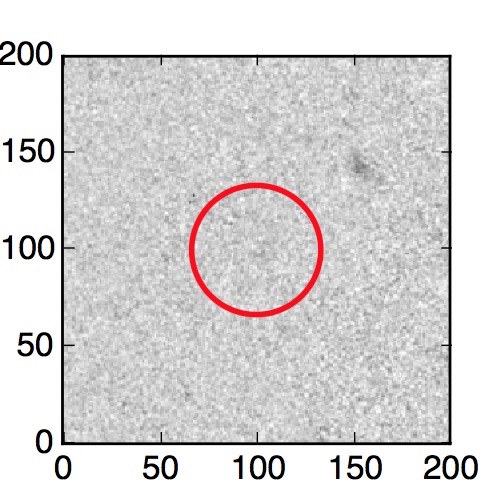 The red circle in the various panels is 1" in radius. The images are 6"x6".