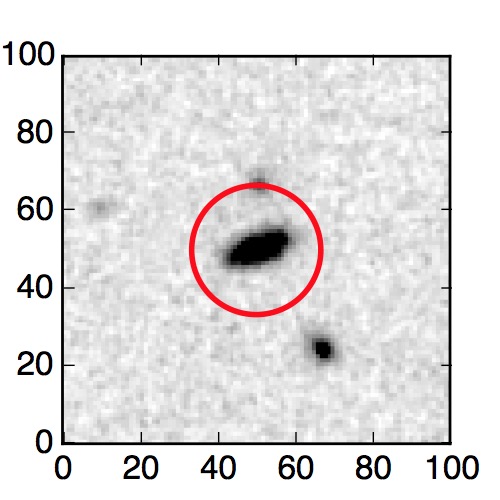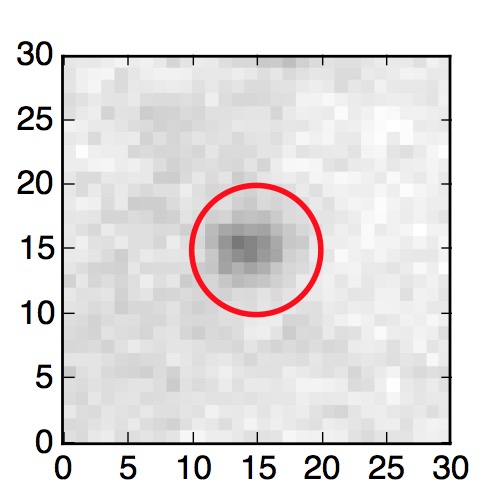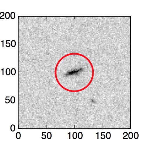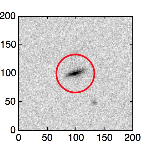 The red circle in the various panels is 1" in radius. The images are 6"x6".