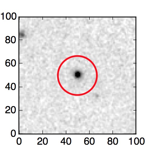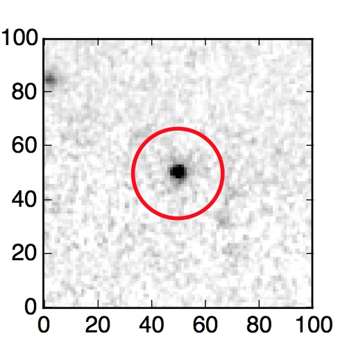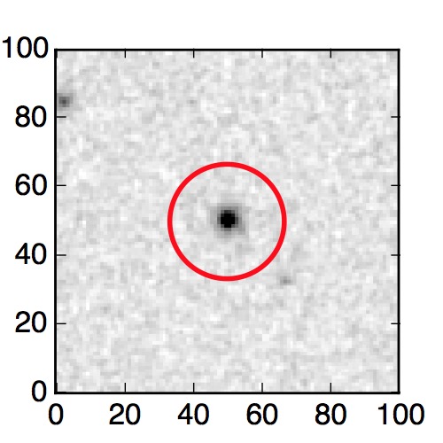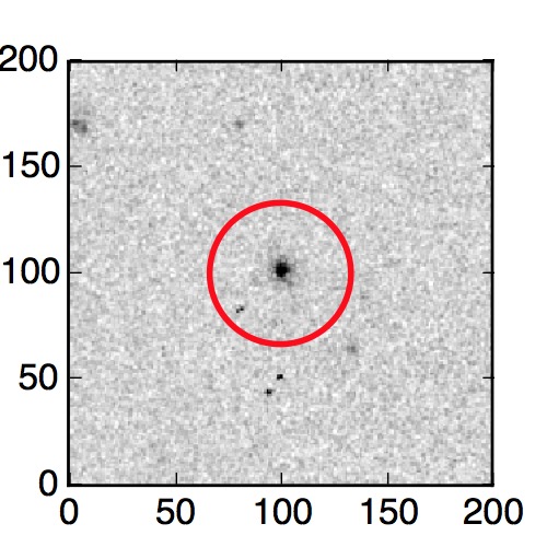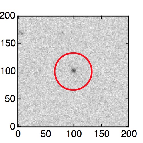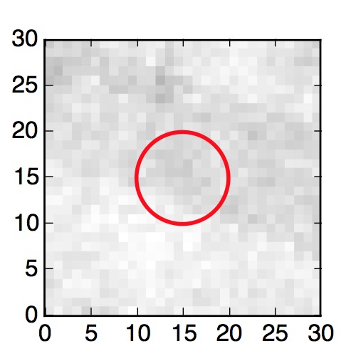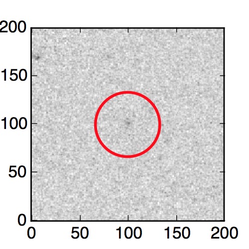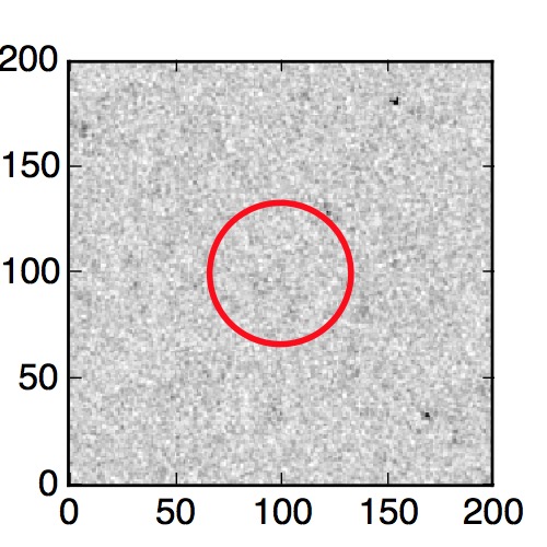 The red circle in the various panels is 1" in radius. The images are 6"x6".