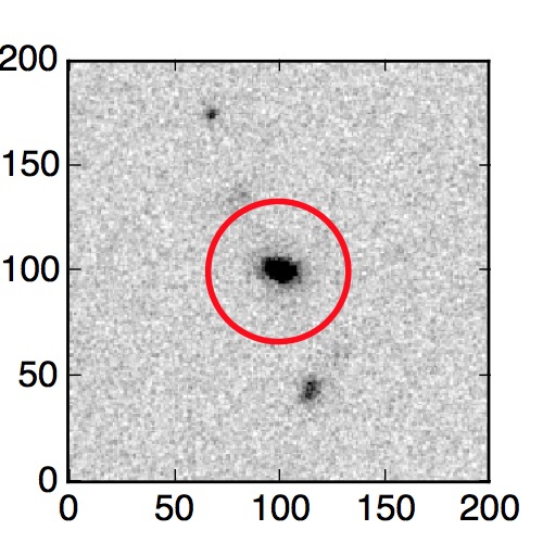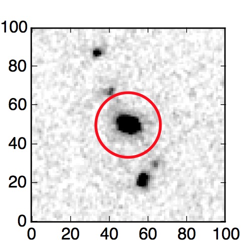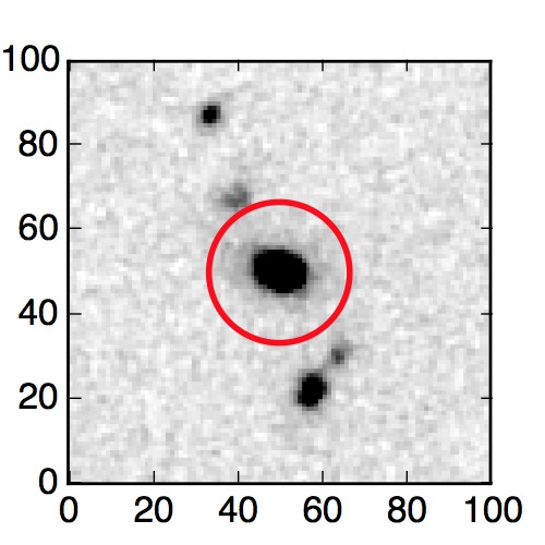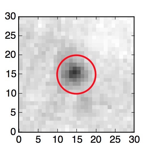 The red circle in the various panels is 1" in radius. The images are 6"x6".