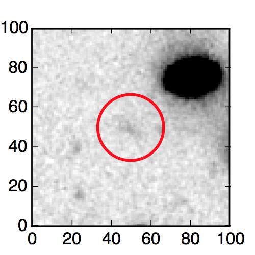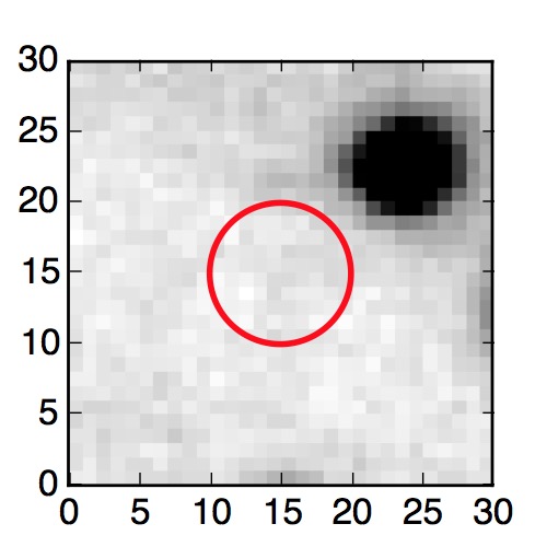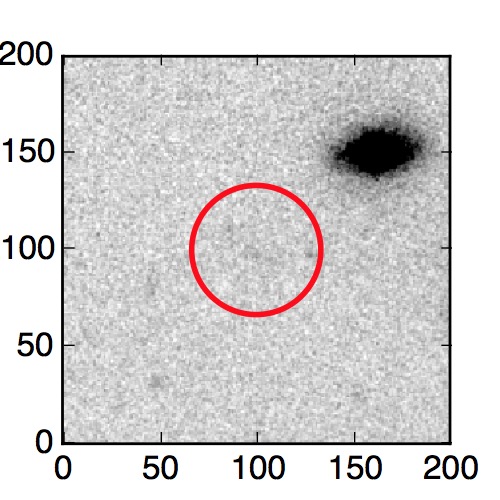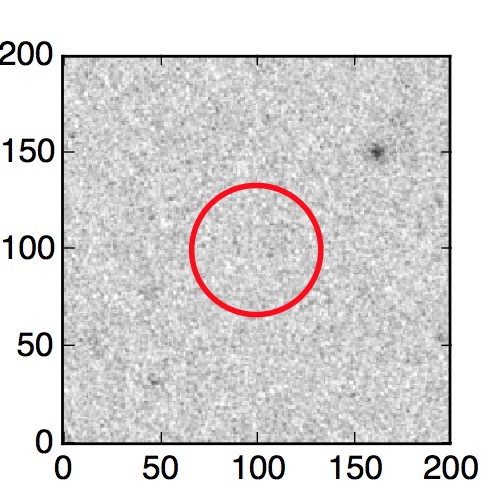 The red circle in the various panels is 1" in radius. The images are 6"x6".