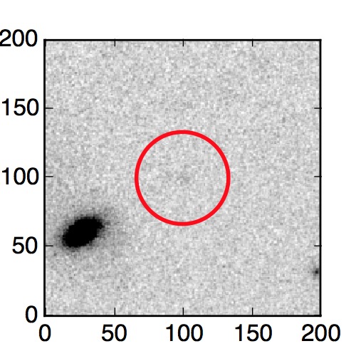 The red circle in the various panels is 1" in radius. The images are 6"x6".