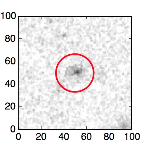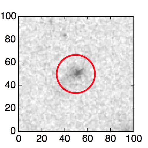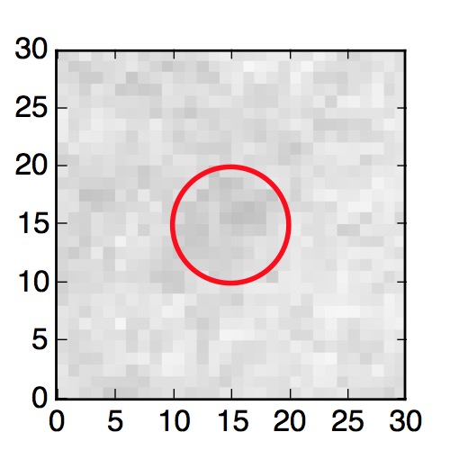 The red circle in the various panels is 1" in radius. The images are 6"x6".