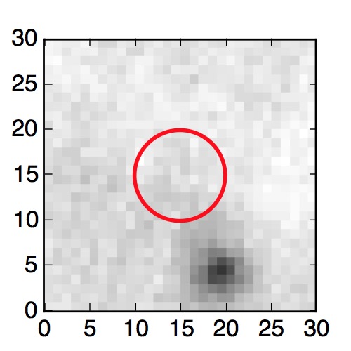 The red circle in the various panels is 1" in radius. The images are 6"x6".