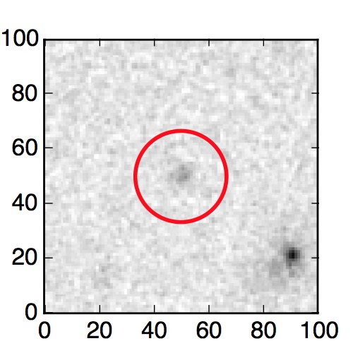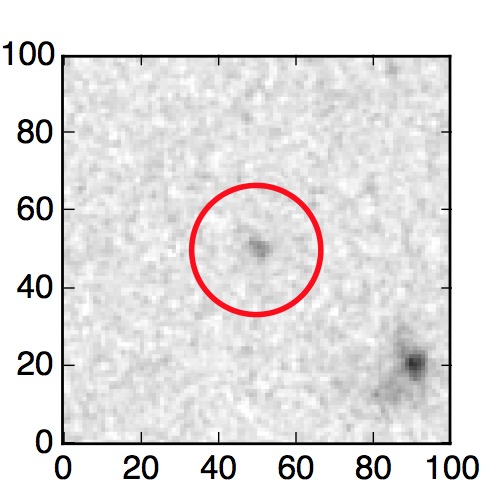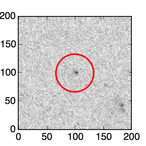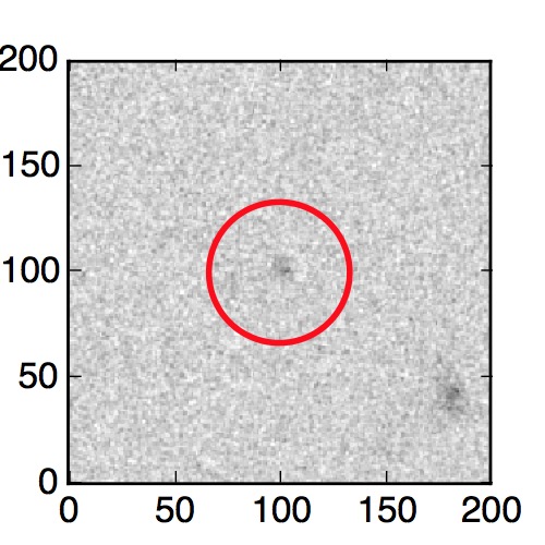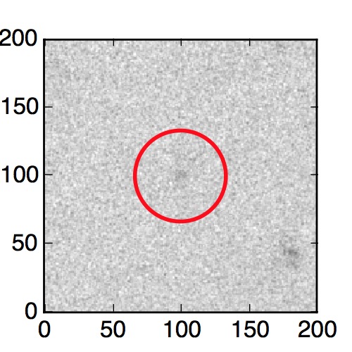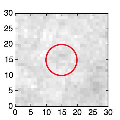 The red circle in the various panels is 1" in radius. The images are 6"x6".