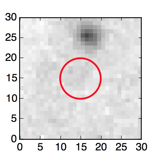 The red circle in the various panels is 1" in radius. The images are 6"x6".