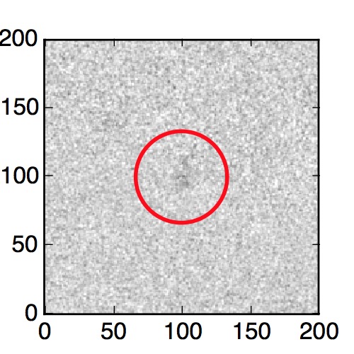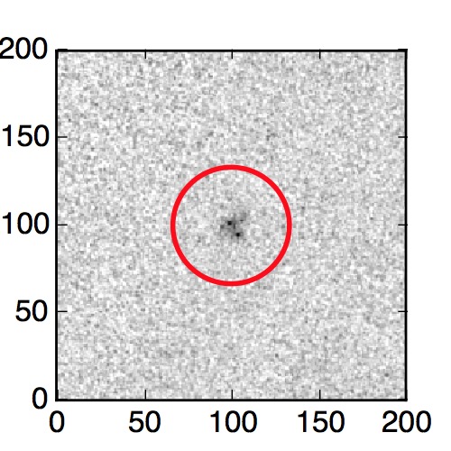 The red circle in the various panels is 1" in radius. The images are 6"x6".