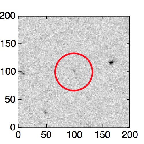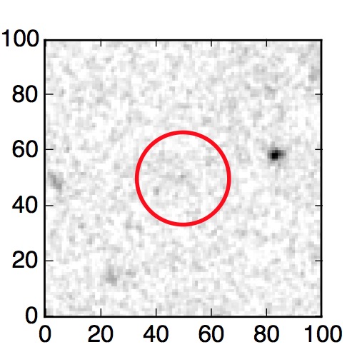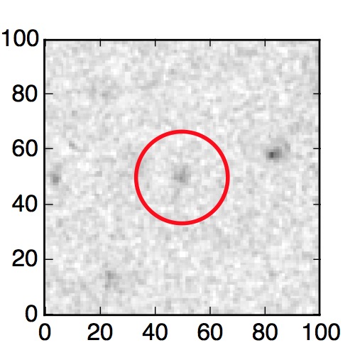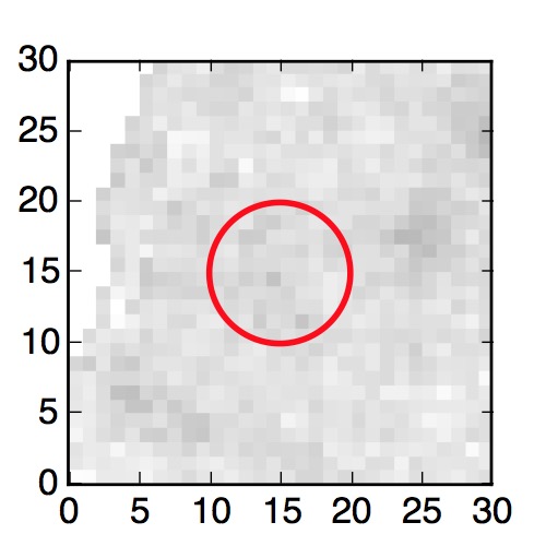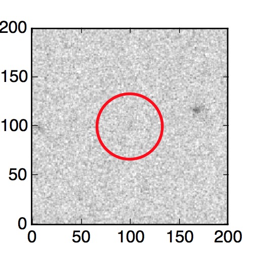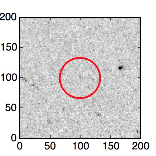 The red circle in the various panels is 1" in radius. The images are 6"x6".