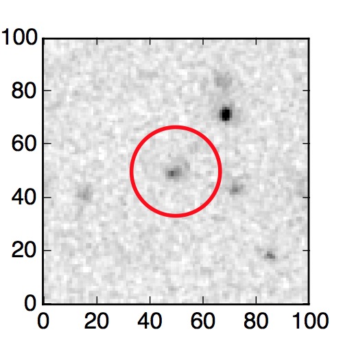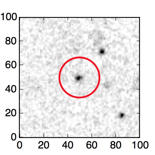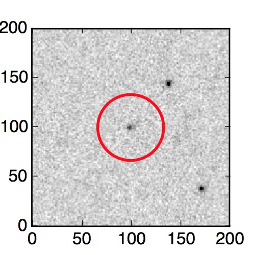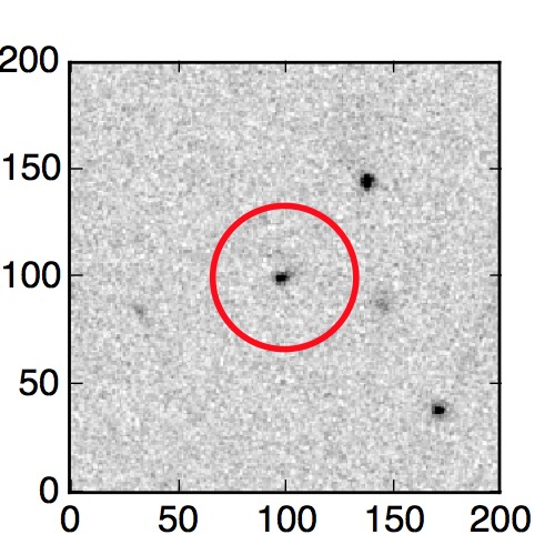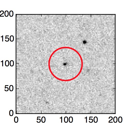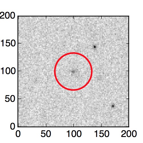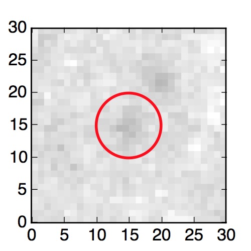 The red circle in the various panels is 1" in radius. The images are 6"x6".