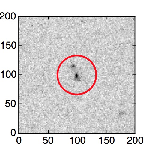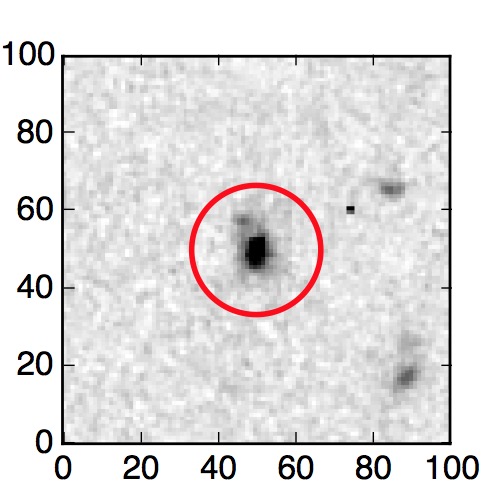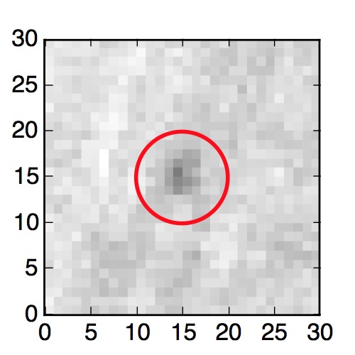 The red circle in the various panels is 1" in radius. The images are 6"x6".