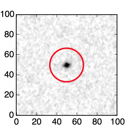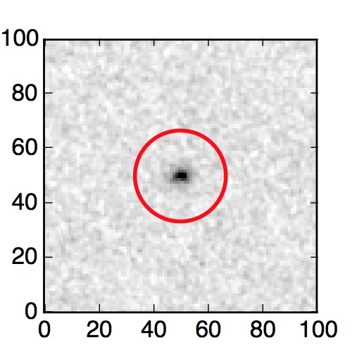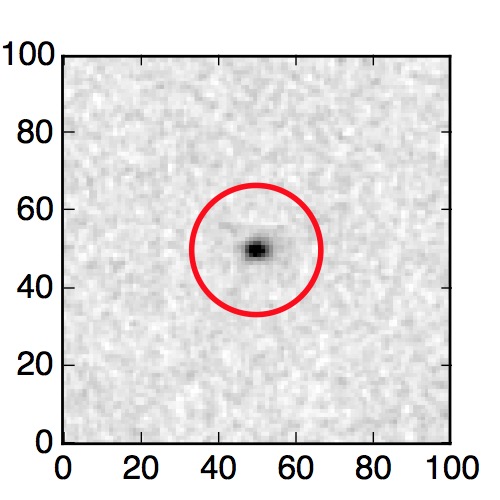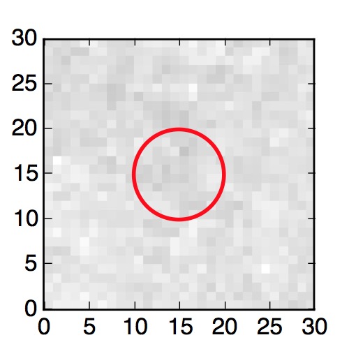 The red circle in the various panels is 1" in radius. The images are 6"x6".