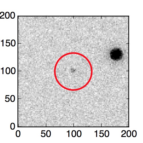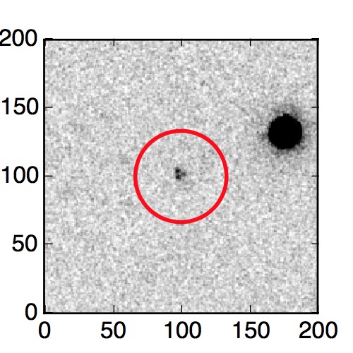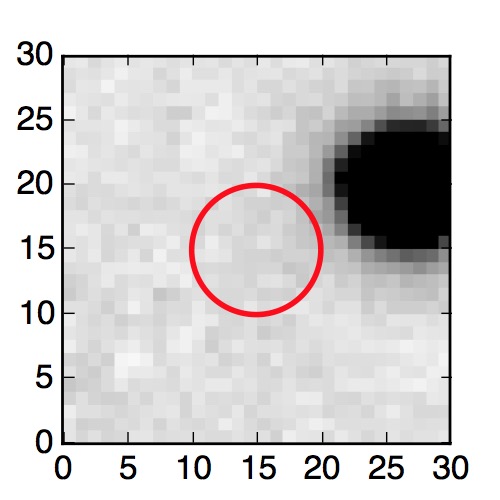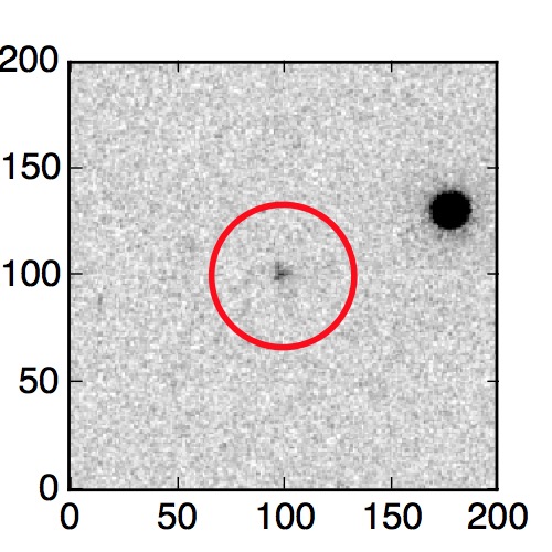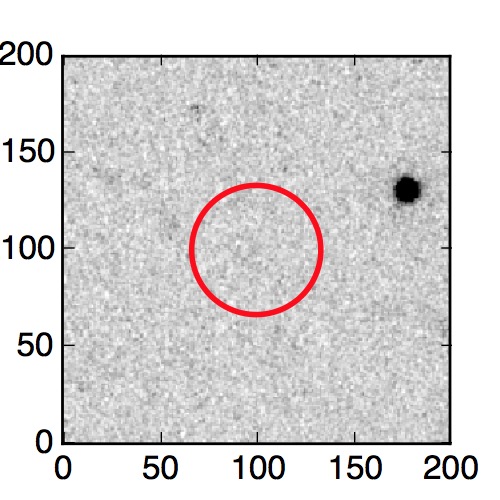 The red circle in the various panels is 1" in radius. The images are 6"x6".