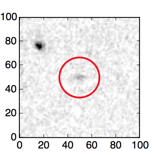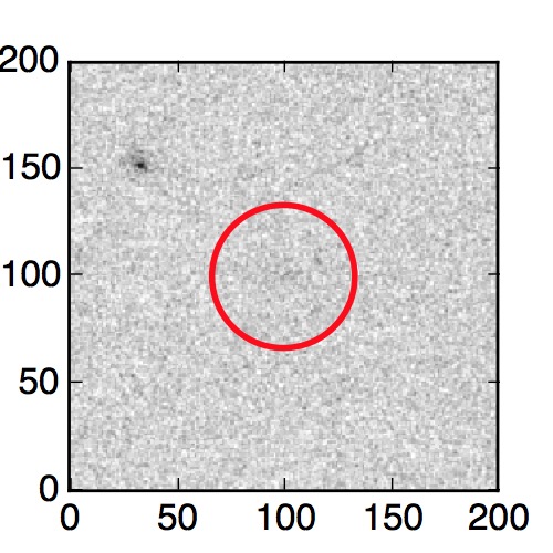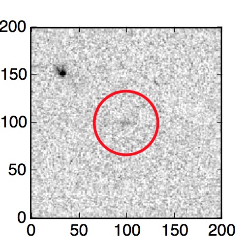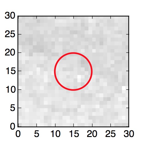 The red circle in the various panels is 1" in radius. The images are 6"x6".