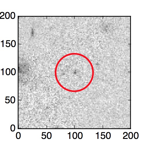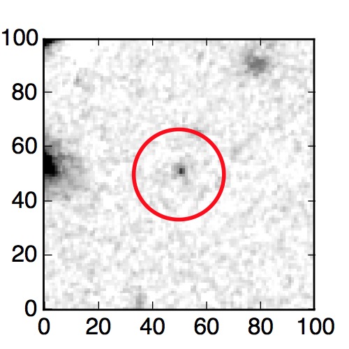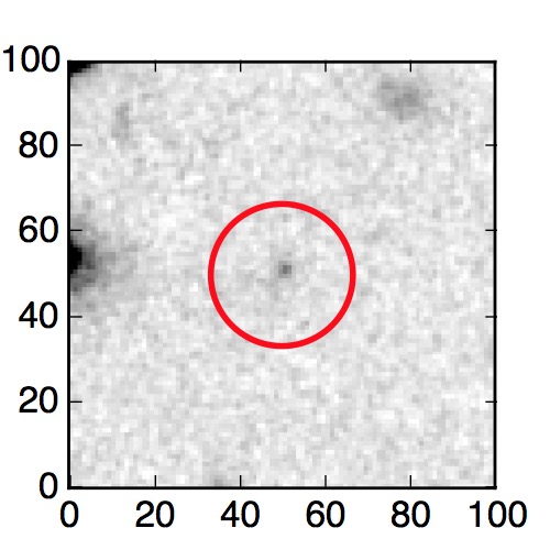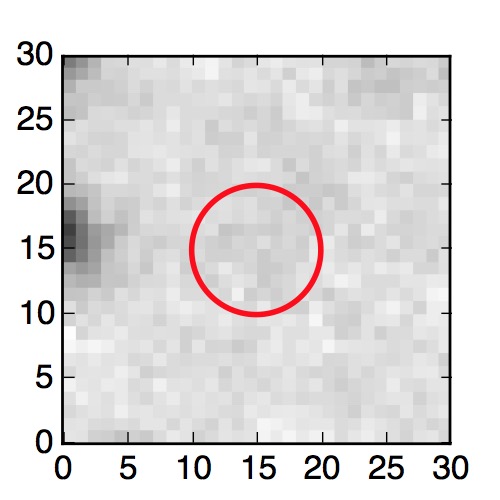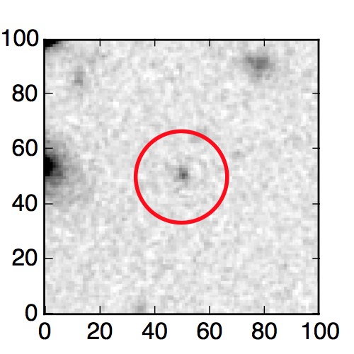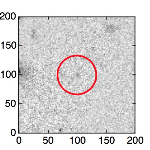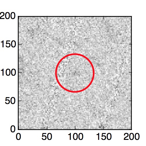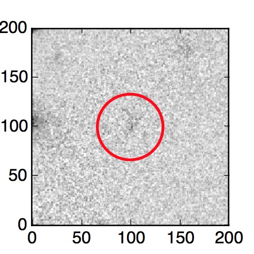 The red circle in the various panels is 1" in radius. The images are 6"x6".