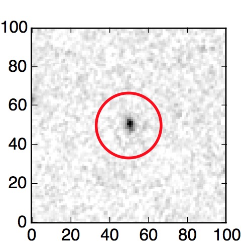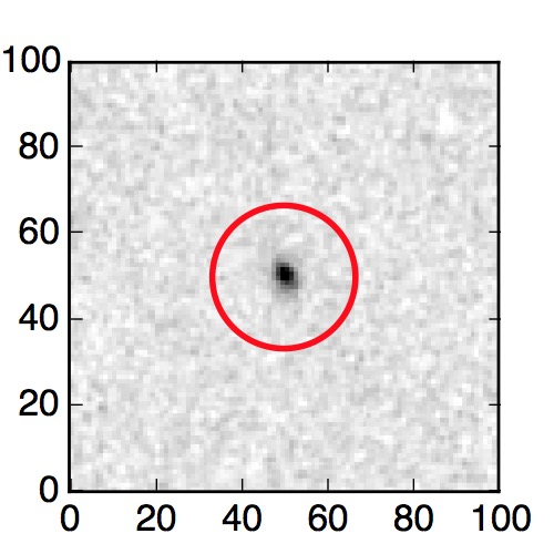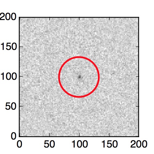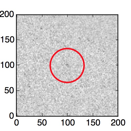 The red circle in the various panels is 1" in radius. The images are 6"x6".