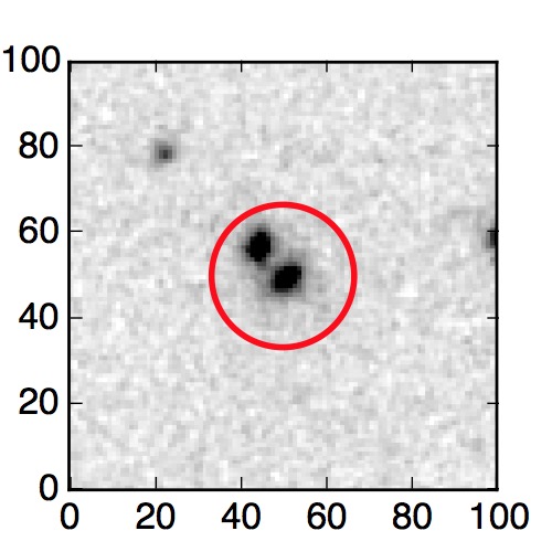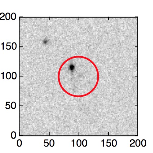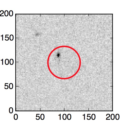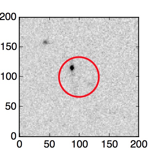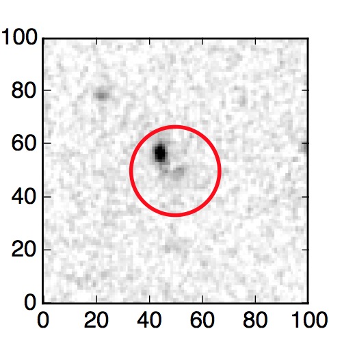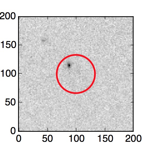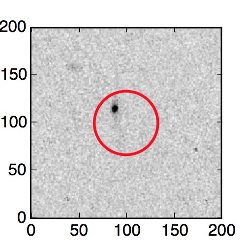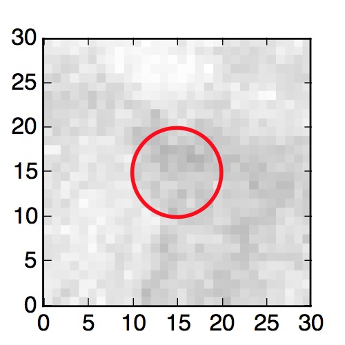 The red circle in the various panels is 1" in radius. The images are 6"x6".