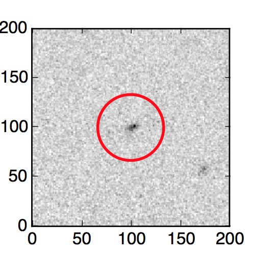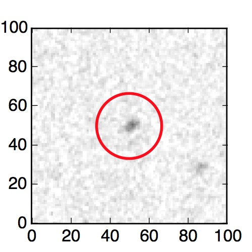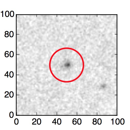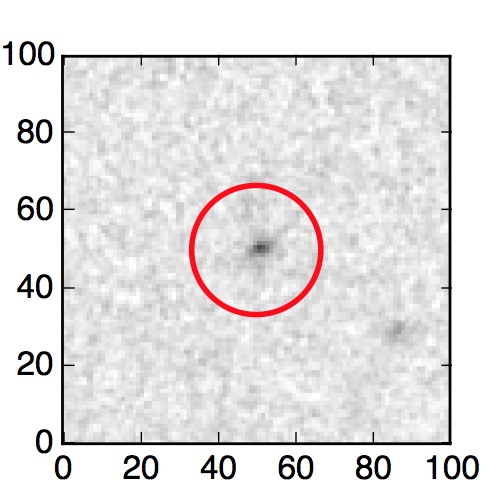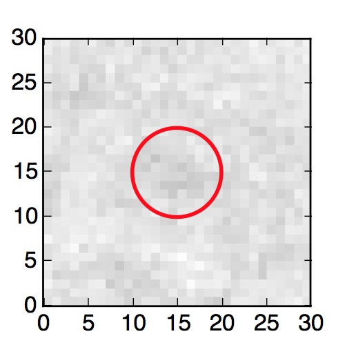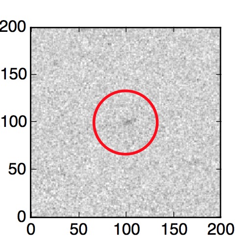 The red circle in the various panels is 1" in radius. The images are 6"x6".