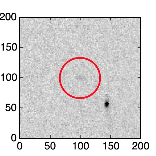 The red circle in the various panels is 1" in radius. The images are 6"x6".