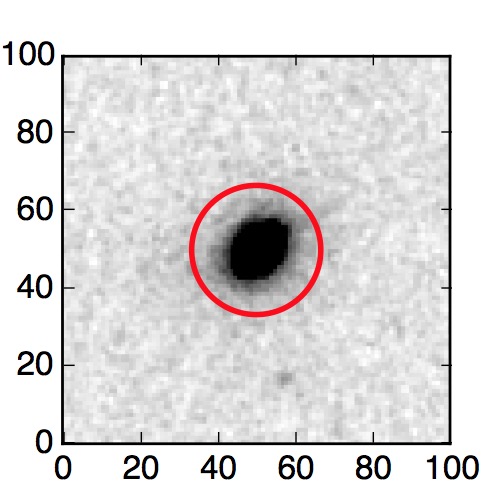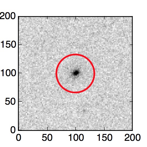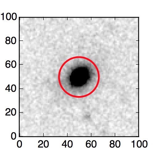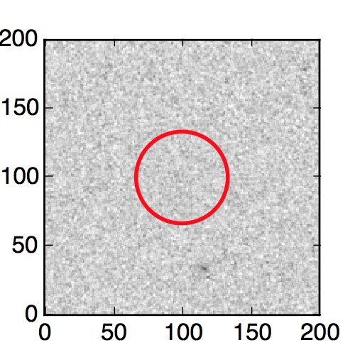 The red circle in the various panels is 1" in radius. The images are 6"x6".